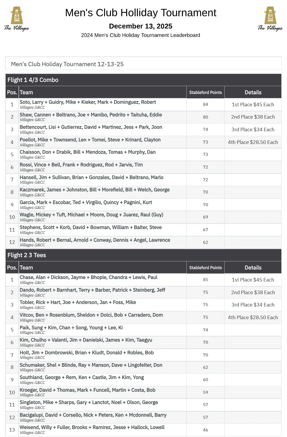 2025 Tournament Results